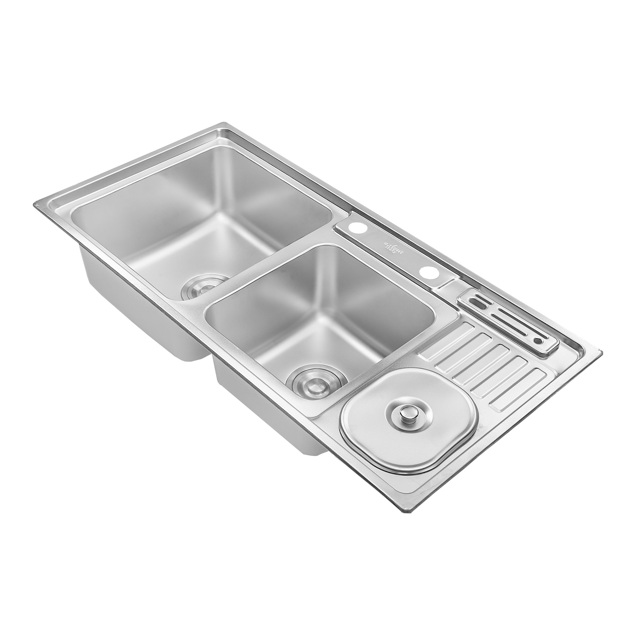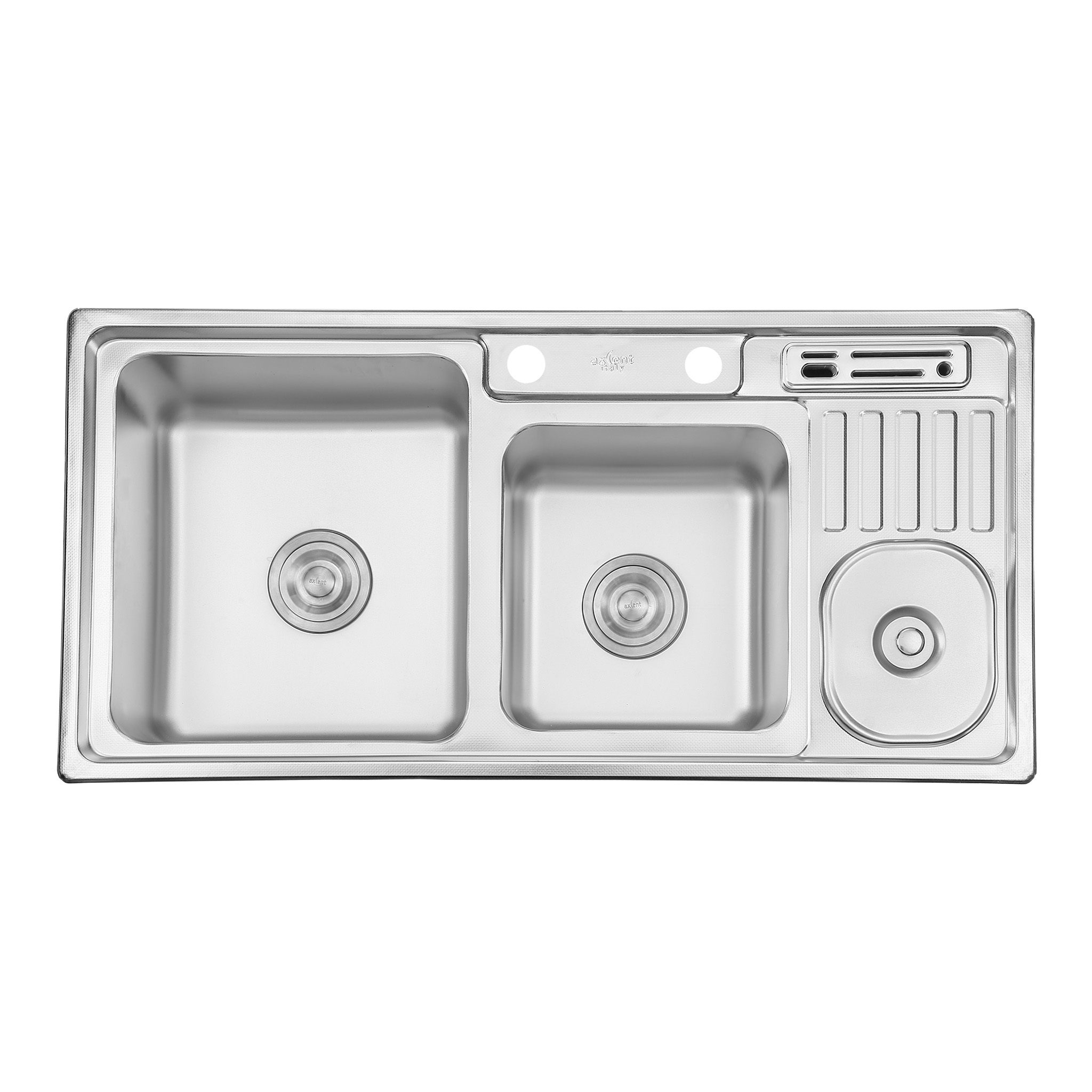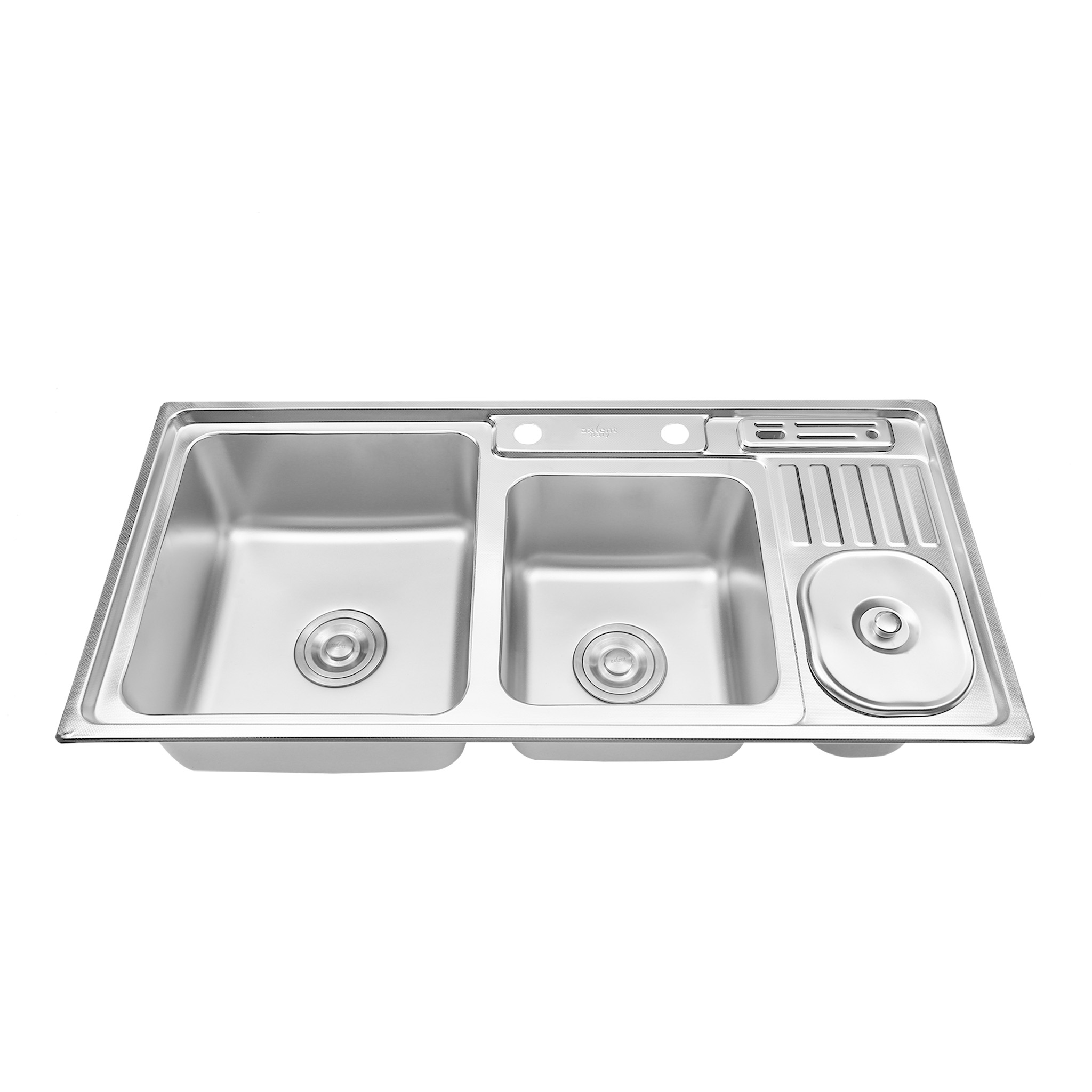 Tarja de empotrar Calibre 22 93 x 45 x16 cm Acabado satín Incluye cespol doble y contracanastas