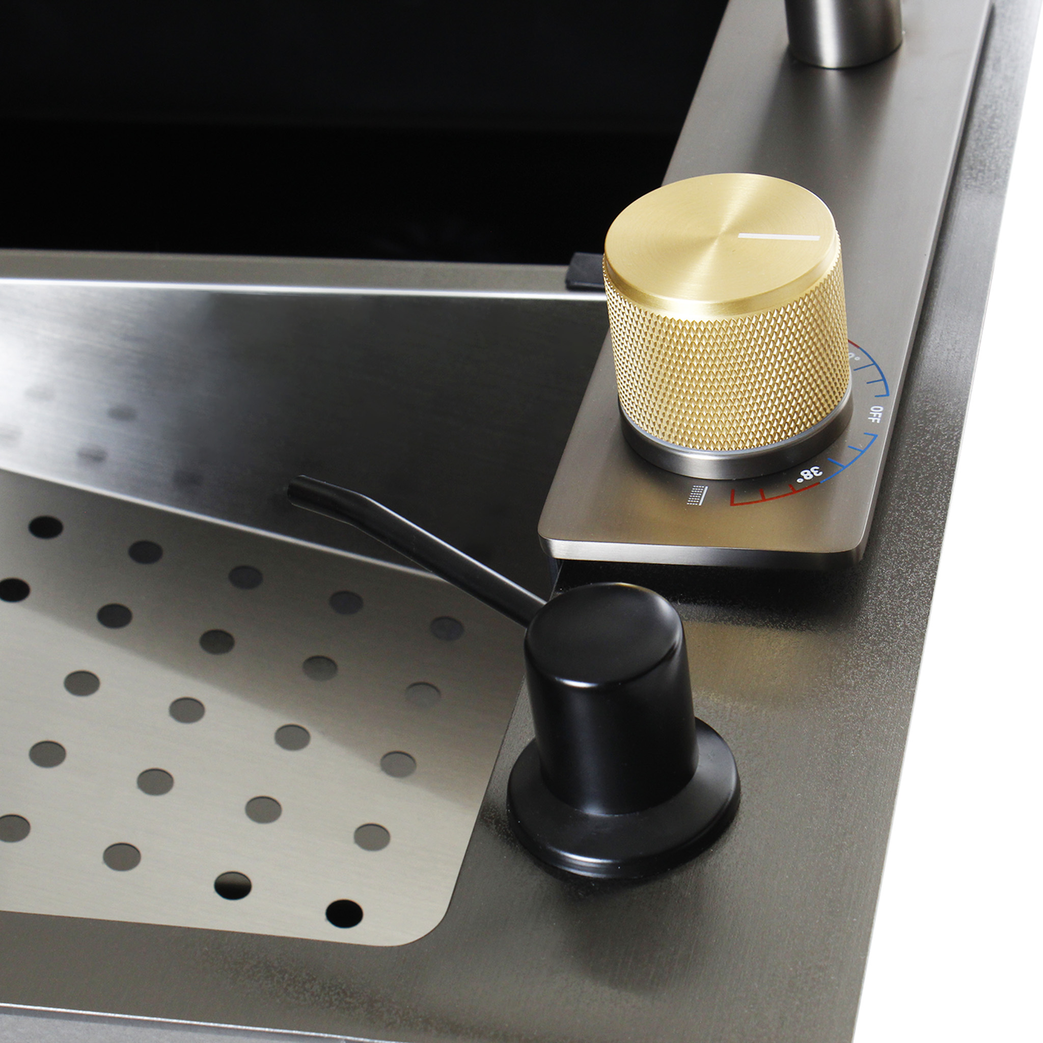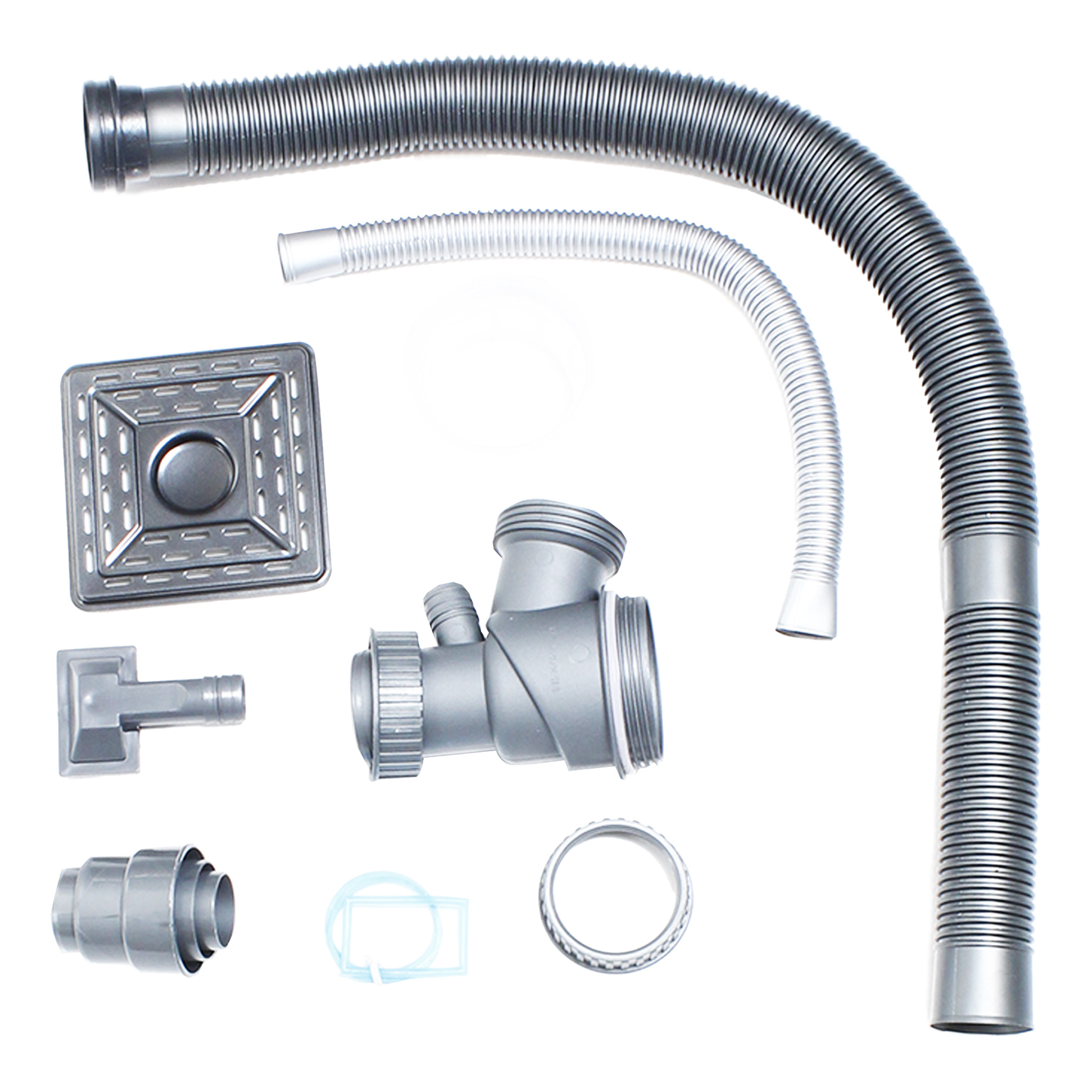 Incluye cespol, contracanasta, monomando, dispensador de jabón charola tabla y escurridor